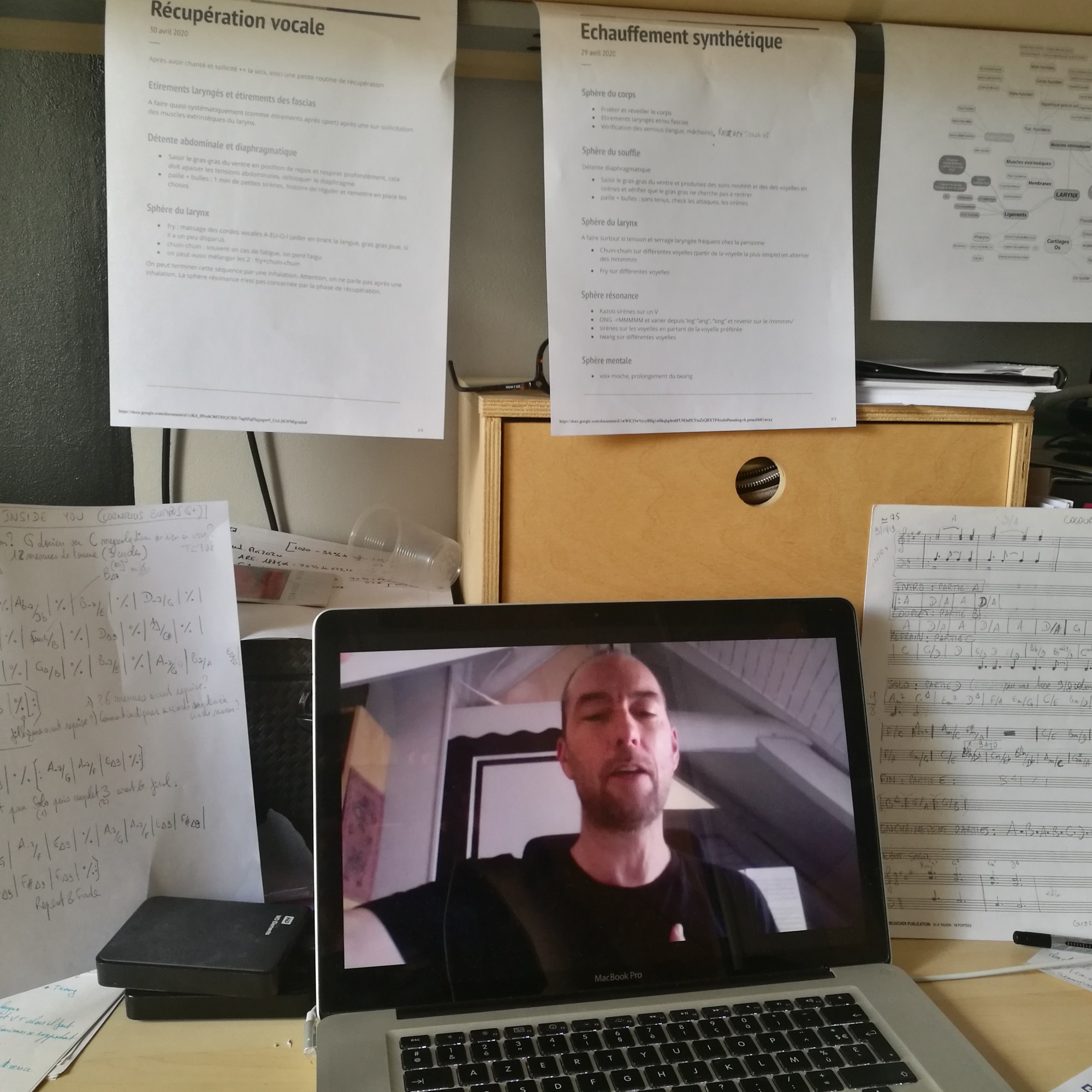 Avant tout premier cours, j’ai pour habitude de faire remplir un formulaire en ligne permettant d’une part de faire connaissance mais aussi d’entrevoir les objectifs attendus. Ensuite, nous nous voyons sur cette base pour un premier cours afin de définir la base de travail sur le court et moyen terme. Le plus souvent, je demande de préparer une chanson (a capella, playback) pour ce premier cours.